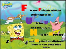 F is for friends who do stuff together u is for you and me n is for anywhere and anytime at all chorus. Here we go again. Let me spell it for ya. Down here in the deep blue sea.