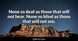 Matthew henry quotes none so deaf as those that will not hear. If somebody is choosing not to listen to you. The most deluded people are those who choose to ignore what they already know. None so blind as those that will not see.
