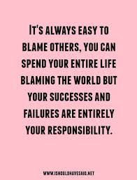 When you blame others you re lifting the accountability and responsibility off of yourself and passing the buck. Thinking that only their ideas matter they assume they are always right. They need to learn that if they want different outcomes they will have to make different choices. The most common explanation is that someone else is interfering.