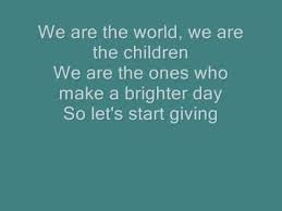 This song was a charity single meant to help the victims of famine in africa. The first lines in the song s repetitive chorus proclaim we are the world we are the children we are the ones who make a brighter day so let s start giving.